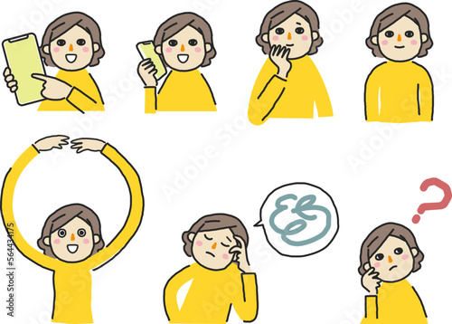 様々な表情のミドルの女性 表情集 セット イラスト素材