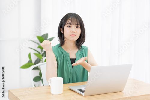 パソコンを使っていて納得した若い女性