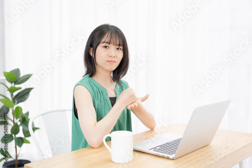 パソコンを使っていて納得した若い女性