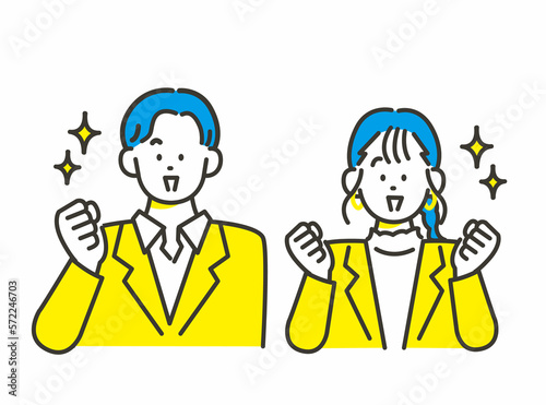 ガッツポーズで応援する男女 ビジネス素材 イメージイラスト