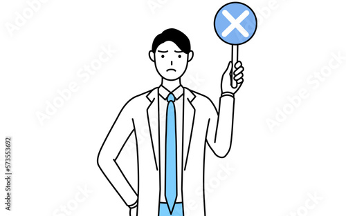 不正解を示すバツの棒を持つ白衣を着た男性医師