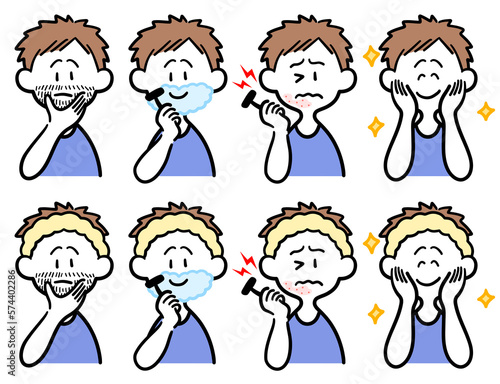髭の処理をする男性のセット
