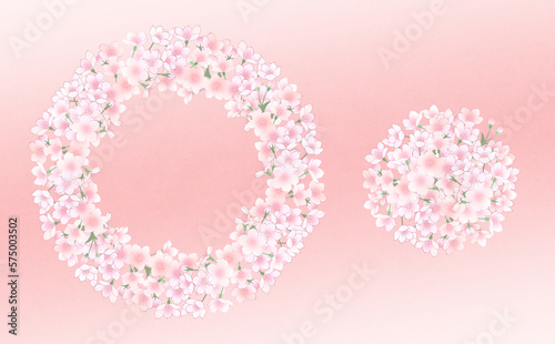 満開の桜のリース -桃背景-