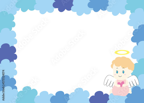 ハートを持った天使入りの青色フレーム