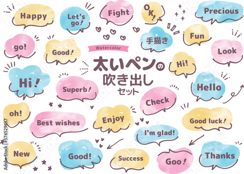 太いペンの吹き出しセット 水彩