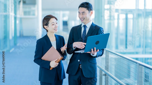 話をする日本人男女