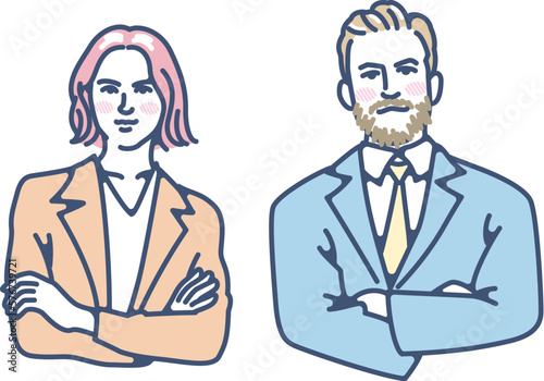 腕組みをしている外国人のビジネスパーソン
