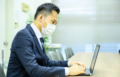 business, man, japanese, office, 30s, japan, work, businessman, office, personal computer, people, man, employee, asia, daytime, daytime, daytime, light, corporation, workshop, salaried employee, cool, refreshing, suit, alone, waist up, work, copy space, young, table, desk, boardroom, cyberspace, keyboard, typing, notebook, corporate, office, mask