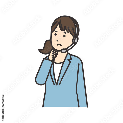 顎に拳をあてて悩むオペレーターの女性のイラスト