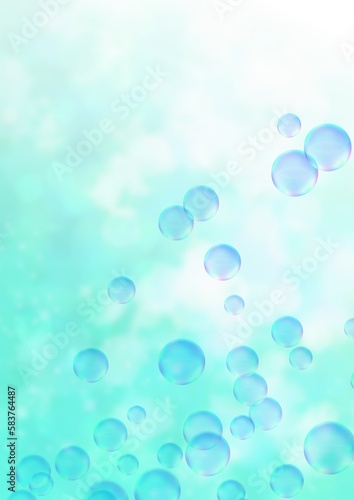 泡・バブル・シャボン玉と光が差す水色背景のイラスト