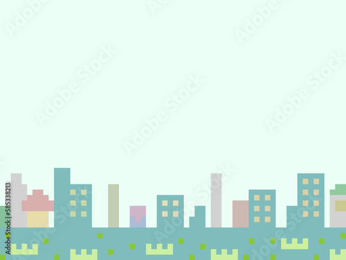 街並みのドット絵 明るい青