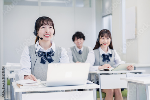 デジタル端末で授業を受ける高校生