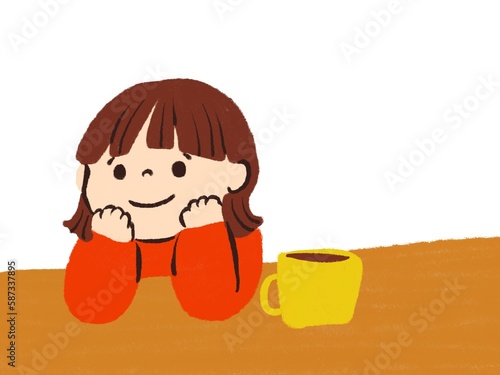 コーヒーを飲みながらのんびりしている女の子