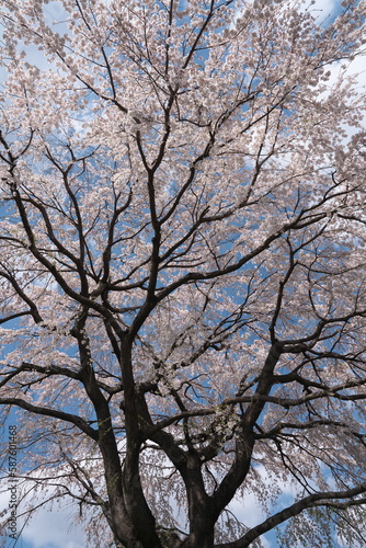 春・満開のしだれ桜の古木