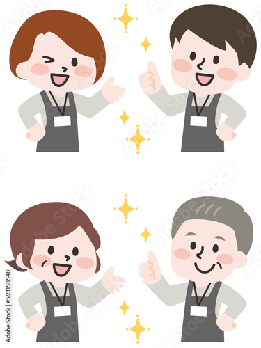 エプロンをつけた笑顔の人物セット(ネーム付き)