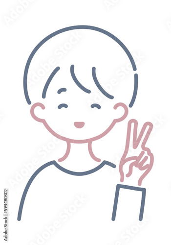 ピースサインをしている人物のシンプルなイラスト