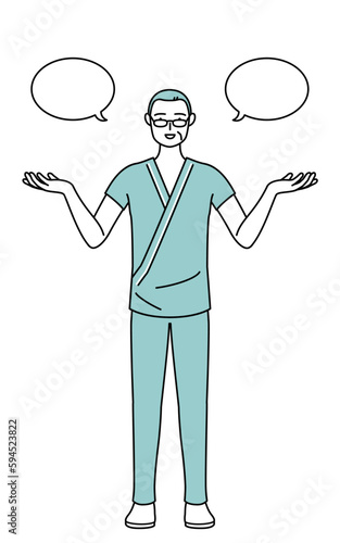 ふきだしつき、比較をする中年・シニア男性入院患者