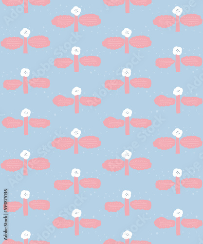 北欧風 手描きの花柄 シームレスパターン(ピンク×水色)