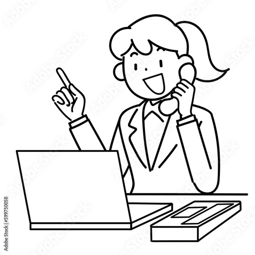 call, woman, notebook, business, vector, personal computer, smile, work, employee, waist up, illustration, people, office, young, japanese, suit, corporation, sweet, monochrome, pose, staff, work, cyberspace, version, personal computer, expression