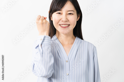 ガッツポーズをする若い女性 ビジネスイメージ