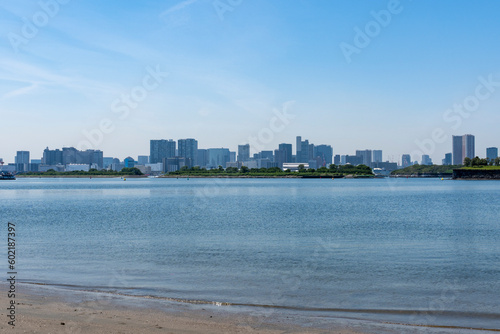 東京 お台場海浜公園から望む海岸風景