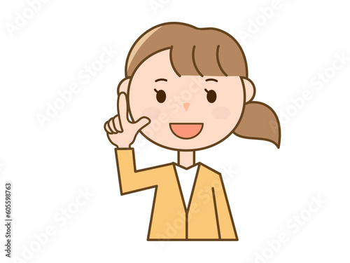 指を指して提案・お勧め・ポイントを説明する若い女性のイラスト_カーディガン着用