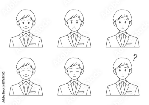 スーツの男性 表情セット(バストアップ・線画・ベクター)