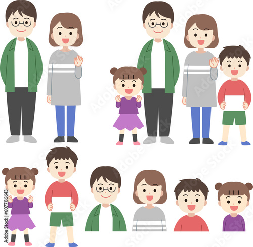 二世代家族・ファミリー、親子のイラストセット 線なし