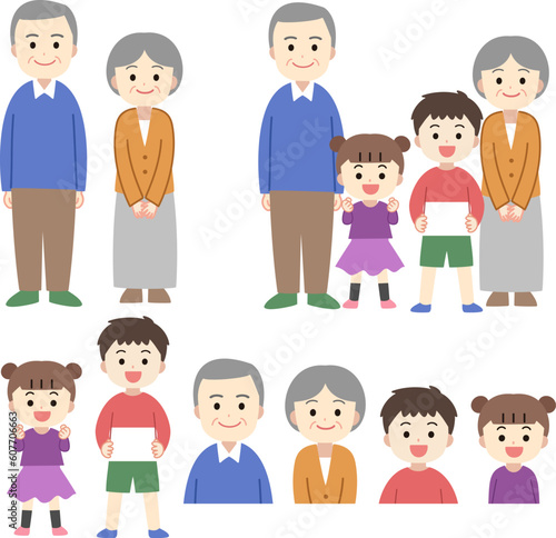 祖父母・孫、シニアと子供のイラストセット 線なし