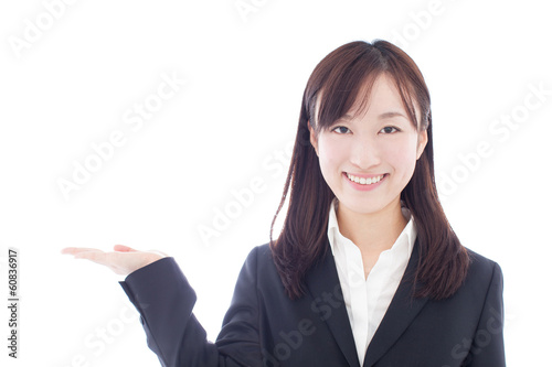 案内する女性