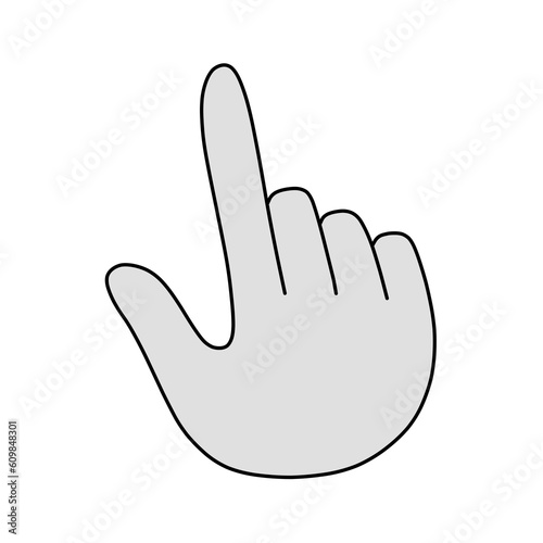 コンピュータのマウスカーソル、指差す、人間の右手、灰色