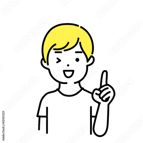 かわいい人物のイラストシリーズ _ カジュアルな男性_ 指差し