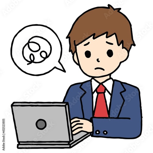 パソコン学習をする男子高校生が困惑している