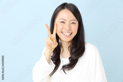 ピースする女性