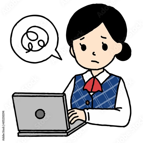 パソコン作業をする事務の女性が困っている