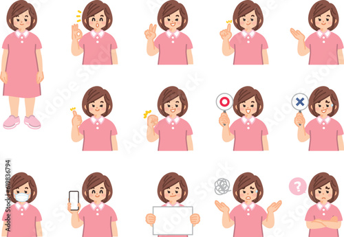 幼い女の子 表情とジェスチャーのイラスト素材セット