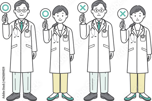 ⚪︎と×の札を上げる医師男女