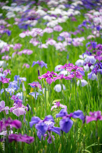 群生して咲く満開の花菖蒲