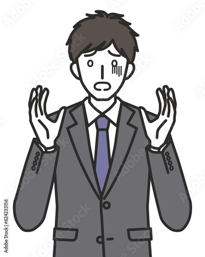 怯えるスーツを着た男性