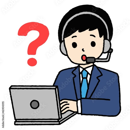 コールセンターの男性が疑問を抱いている