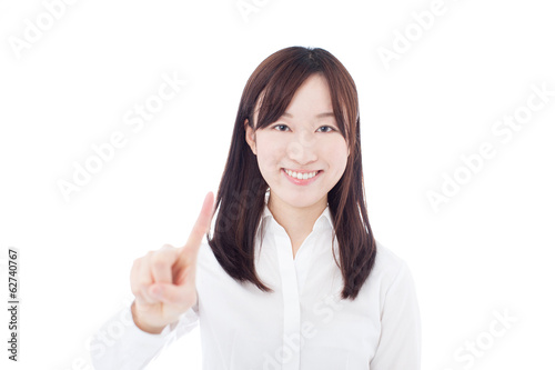 画面に触れる女性