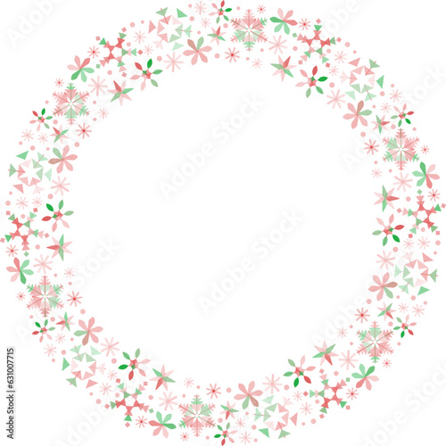 クリスマスに使える赤と緑の背景の雪の結晶のリースのベクターフレーム
