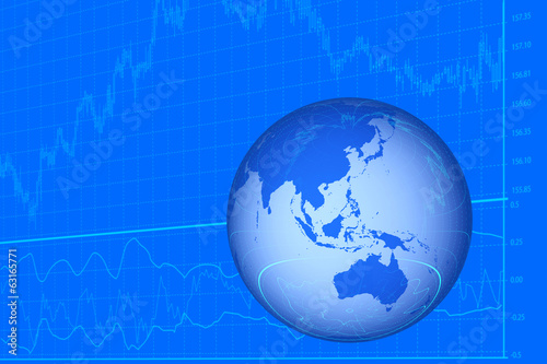 株価のグラフと地球儀