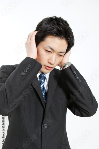 耳を閉じるビジネスマン