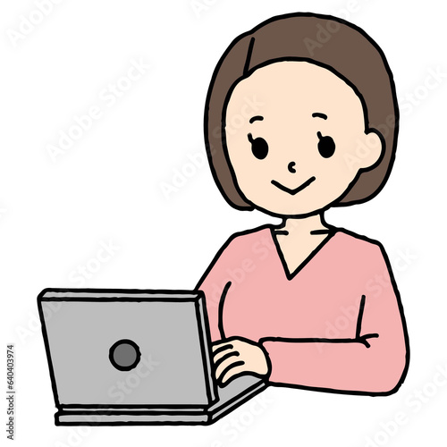 パソコン作業をするボブヘアの女性