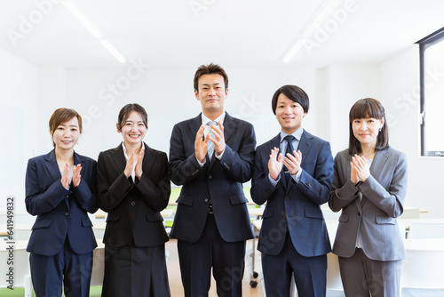 拍手をするアジア人ビジネスマン・ビジネスウーマンの男女