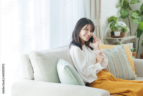 スマホで話す女性