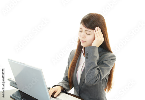 personal computer, notebook, cephalalgia, people, lovely, fatigue, overwork, woman, woman, beauty, japanese, health, cosmetic, business, face, hair, nose, ol, model, sweet, pretty, young, girl, office, career woman, clean, beauty, white background, copy space, overtime, flop, inability, apprehension, blues, expression, clean, dispatch, black hair, pose, work, corporation, corporate, staff, office worker