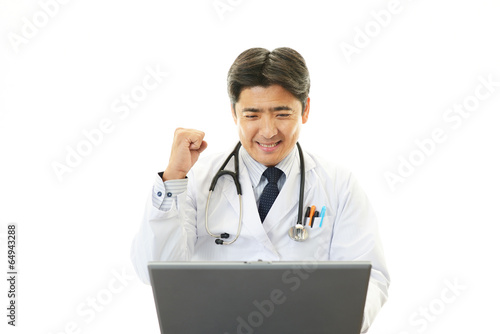 personal computer, man, man, success, doctor, doctor, people, smile, doctor, medical care, care, welfare, health, cosmetic, notebook, cyberspace, personal computer, japanese, model, marode, happy, happiness, exam, diagnosis, healthful, good-looking, treatment, hospital, clinic, clinic, victory, glory, achievement, labcoat, japan, internist, office, business, light, clean, white background