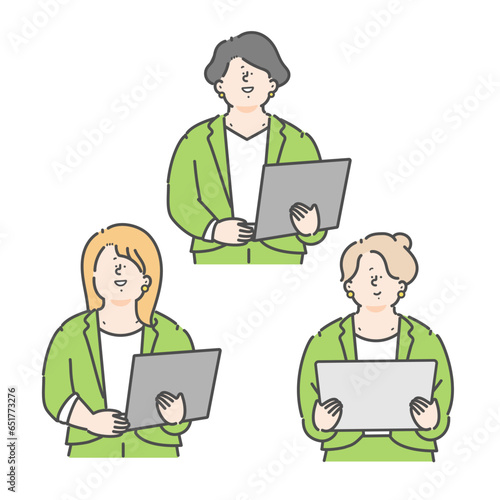 パソコンを持つ女性のビジネスパーソンのイラスト